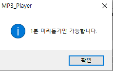 해당 MP3 플레이어에 음악 파일을 실행시키면 1분까지만 실행되고 팝업창이 출력된다.