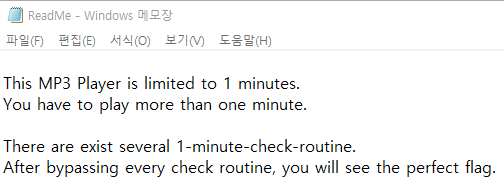 해당 뮤직 플레이어는 1분만 음악을 들을 수 있도록 제한되어있다. 1분 이상 들을 수 있도록 1분 체크 루틴을 수정해야한다.