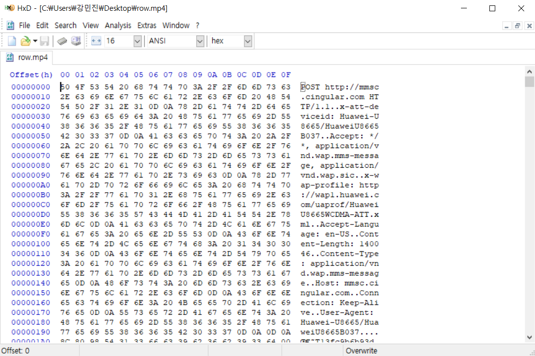 HXD로 파일을 열어보면 위와 같은 데이터를 볼 수 있다.