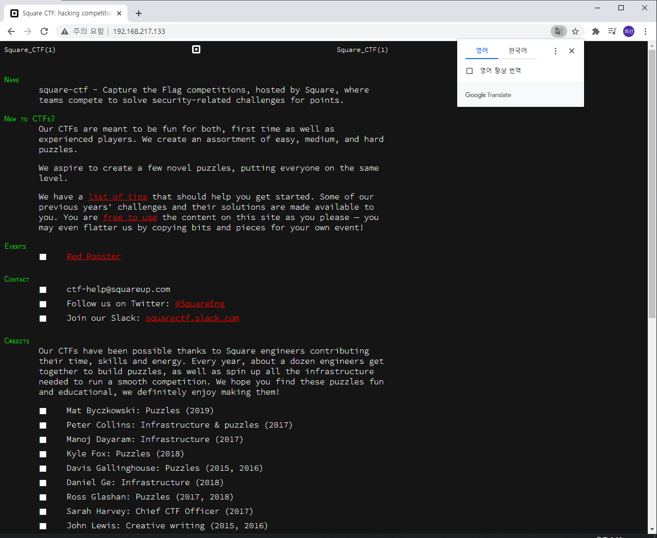 SquareCTF(2017) 챌린지를 진행하실 수 있습니다!
