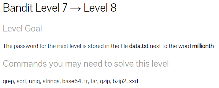 문제 해설) 다음 레벨의 패스워드는 millionth 단어 옆에 있는 data.txt파일에 저장된다.