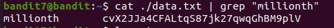 cat 명령어와 grep 명령어로 data.txt 파일 내 millionth라는 키워드 가 포함된 내용을 출력해줄 수 있도록 한다.