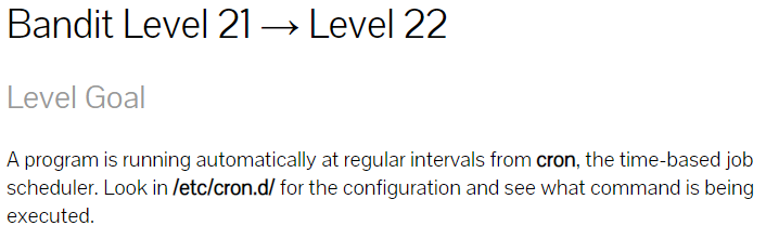 이중 bandit22파일이 패스워드를 알려주는 파일인것 같다. cronjob_bandit22 파일을 읽어보니 두개의 문장이 나온다.
