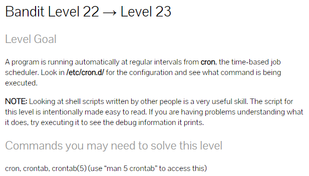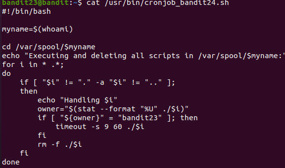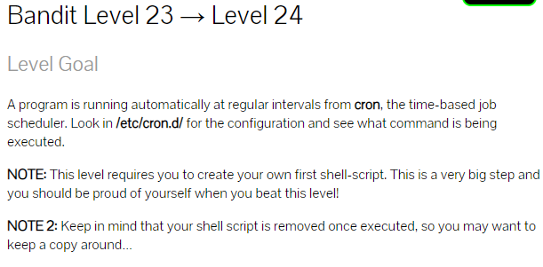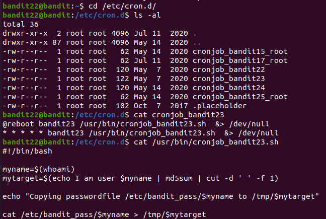 bandit 23에 접속을 한뒤, /etc/cron.d/ 를 읽어보면