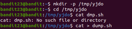 우선 tmp 에 본인의 폴더를 생성한 뒤 dump.sh라는 파일을 통해 bandit24 비밀번호를 본인의 폴더에 복사시킨다.