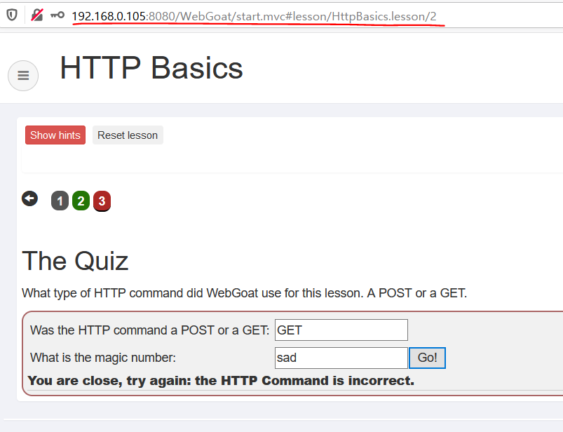go!를 눌렀을때 get과 post중 어떤 커맨드가 사용되는지와 magic number를 맞추어보라는 내용이다.