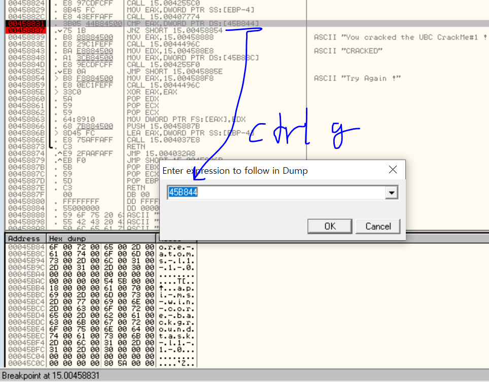 코드를 살펴보니 EAX 값과 DS 값(45B844 주소의 4Byte 값)을 비교해서