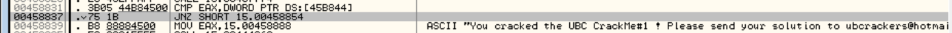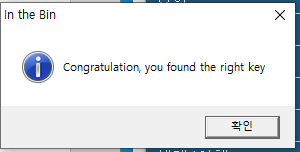 eax(내가 입력한 값)과 7A2896BF(10진수로 2049480383) 비교함key 창에 2049480383 입력하면 아마 congratulation 문구랑 함께 맞는 키를 찾았다고 알려줄것이다.