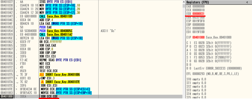 다음 줄에서는 XOR을 통해 ECX, EDX를 해주어야하는데