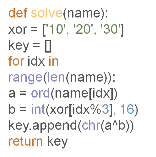 로직에 따라 주어진 시리얼키를 복호화하는 파이썬 코드를 작성하고자 하였다