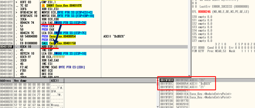 ESP는 0019FDF8, ESI는 0x0, 0xC 라는 사실을 확인했다