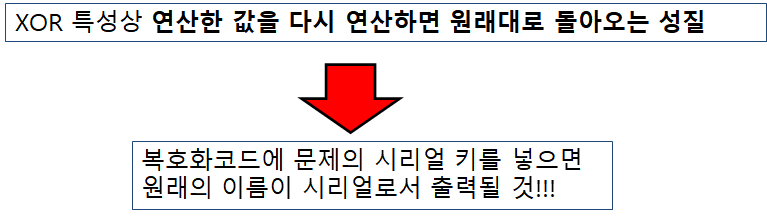 XOR특성상 연산한 값을 다시 거꾸로 연산하면 원래대로 돌아오는 성질이 있어서
