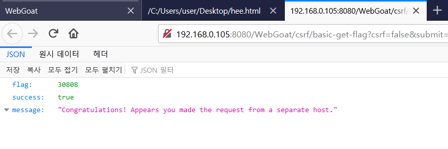 XHR로는 pre-flight 때문에 CSRF 공격이 어려워 다음거는 JSON 형태로 데이터를 전송하면서도 막히지 않을 수 있음. 하지만 현재는 서버와 웹브라우저 측 모두에 책임이 있어 막힌 상태