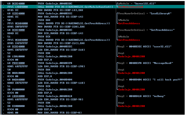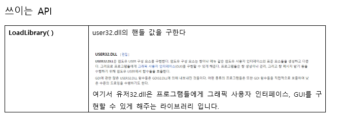 (하지만, 이거는 타깃 프로세스에 이미 LoadLibrary( )코드가 있었기 때문에 따로 삽입할 필요가 없었던 것)