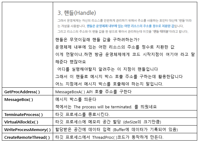 방금 핸들로 알아낸 주소에 이렇게 코드 인젝션해서 스레드에 은근슬쩍 끼워들어가기