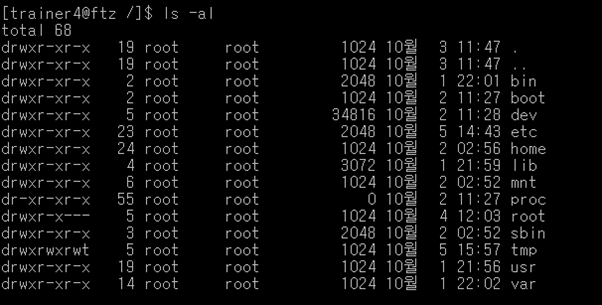 ls -al: 숨겨진 파일, 디렉토리 리스트 상세하게 출력