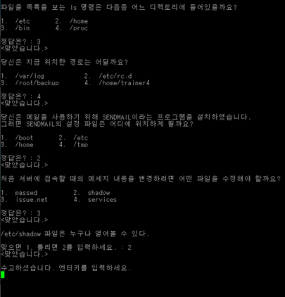 - home : 일반 사용자들의 디렉토리 가 들어가는 곳, guest와 trainer1~10, level1~10 있음