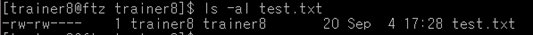 ls –al test.txt 명령어를 이용하여 test.txt 파일이 생성된 것을 확인