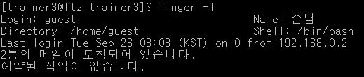 finger –l 명령어를 이용해 사용자의 자세한 정보 확인