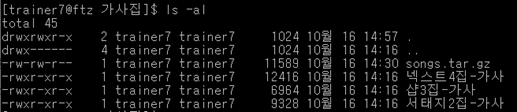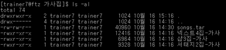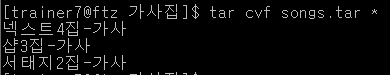 tar xvf songs.tar 명령어를 이용하여 tar을 해제