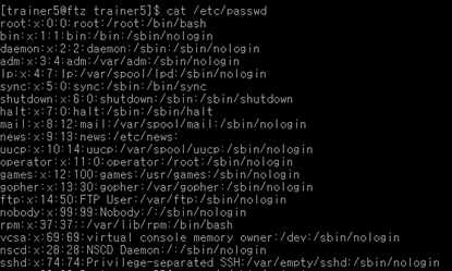 cat /etc/passwd : 서버를 사용하는 사용자들의 모든 정보를 기록해 놓은 파일