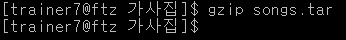 gzip songs.tar 명령어를 이용해 songs.tar을 압축