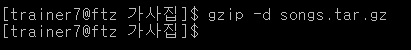 gzip –d songs.tar.gz 명령어를 이용해 해제