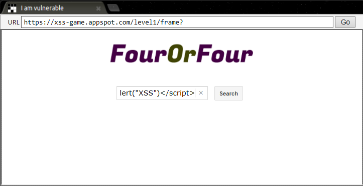 입력창에 <script>alert("XSS");</script>를 넣고 serch를 누르면