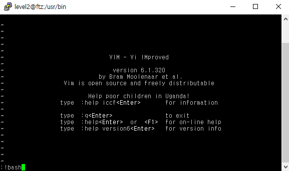 9. :! (외부 쉘 실행시켜주는 명령어) 를 사용해서 bash를 입력하면 level3 권한 획득
