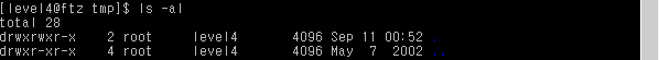 6. cat > level5.tmp로 파일을 만들어 준 다음(내용 무관) ls -l를 입력하면 이제 파일이 존재하는 것을 확인할 수 있다.