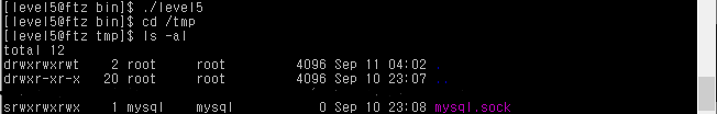 /usr/bin/level5 프로그램은 /tmp 디렉토리에