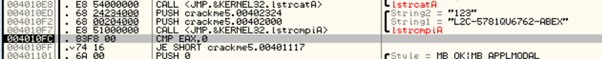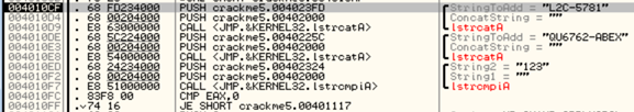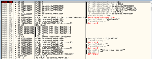 3. 앞에서 생성한 새로운 문자열을 가지고 프로그램 내부에 들어 있는 문자열과 결합해 일련번호 생성.