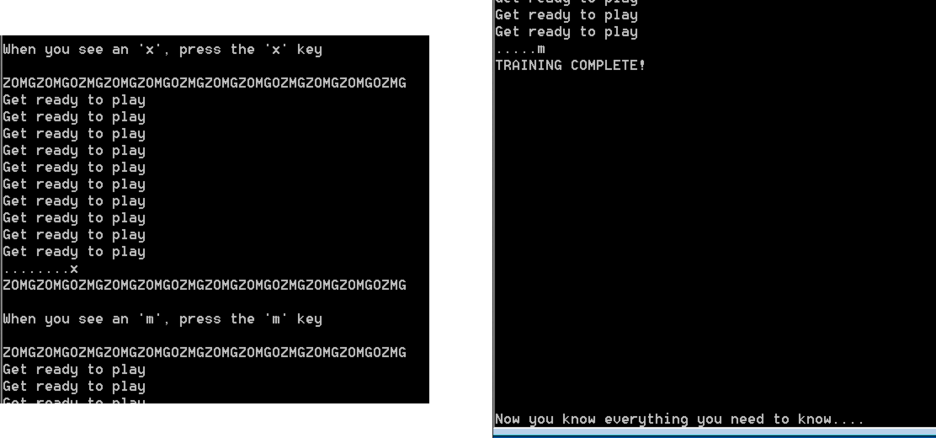 카운트다운이 된 후 출력되는 문자에 따른 키를 누르면 되는 게임이다.