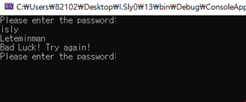 확인해보니 Console.ReadLine() == str 이어야 else로 빠져나가고, well done 메시지가 출력된다고 한다.