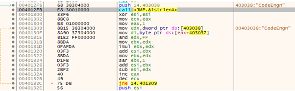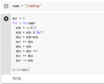 1. mov dl, byte ptr ds:[eax+403037]는 dl = name[i] 라고 볼 수 있습니다.