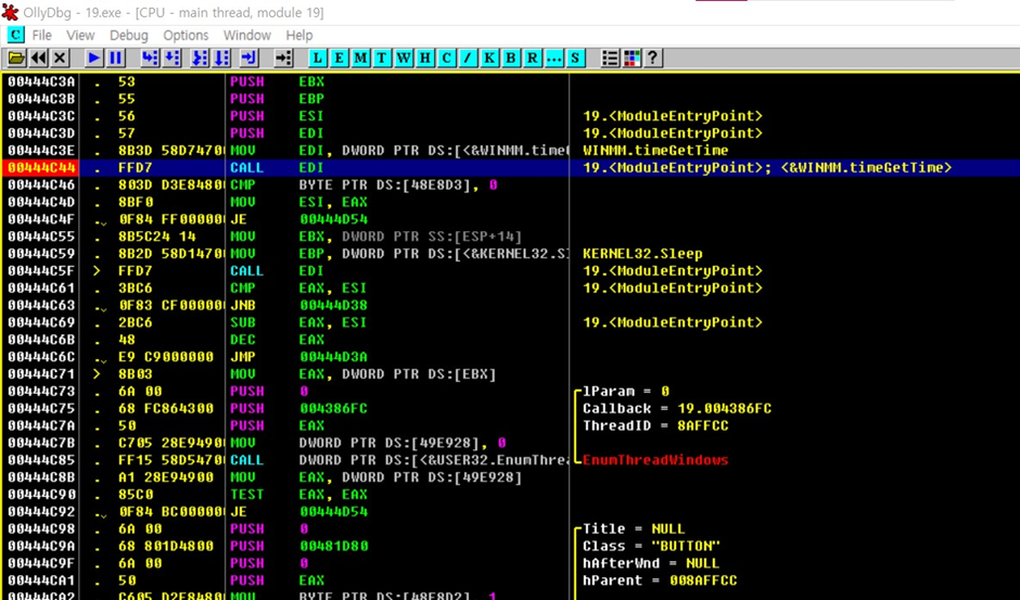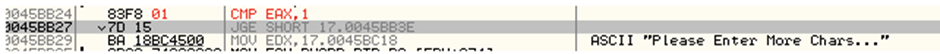 EAX가 더 크면 00444C71로 분기하면서 종료됨 그렇지 않으면 EAX가 더 커져서 종료할때까지 과정 반복