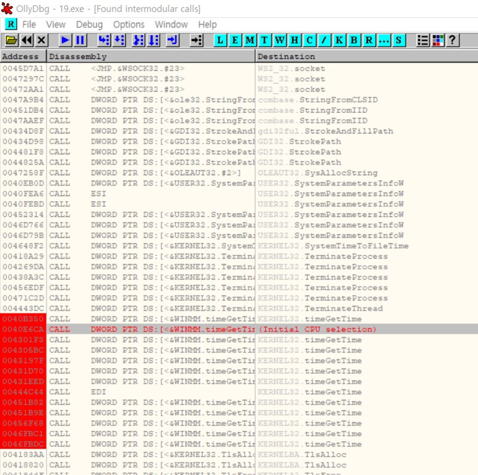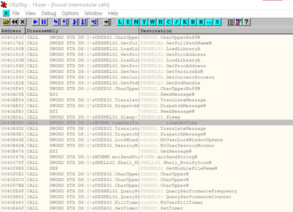 시간과 관련된 함수인 timeGetTime이라는 함수 발견 이 부분에 전부 브레이크포인트를 걸어줌