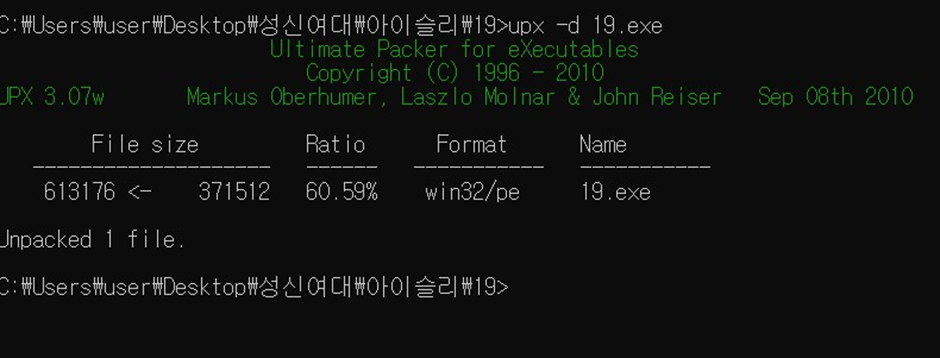 성공적으로 언패킹 완료