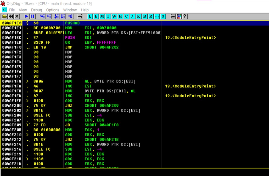디버깅 하다보면 jnb 00444D38 명령어를 통해 해당주소로 이동