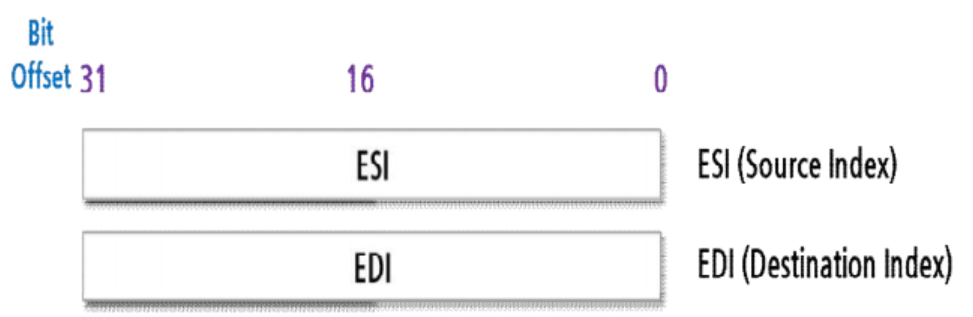 ESI : 복사나 비교를 할 경우 출발지 주소를 저장하는 레지스터이다.