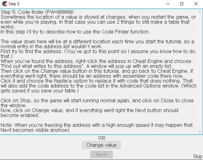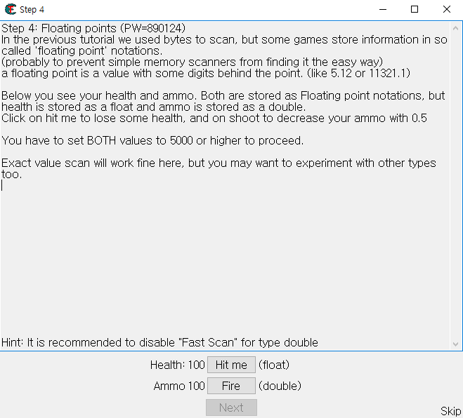 4. 프로그램으로 돌아가면 프로그램 내부적으로 Value가 1000이 되었기 때문에 Next 버튼이 해금되어 누를 수 있게 된다.
