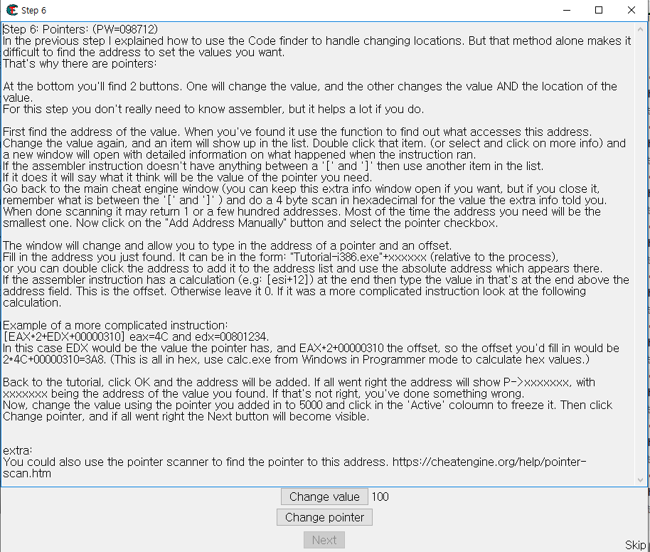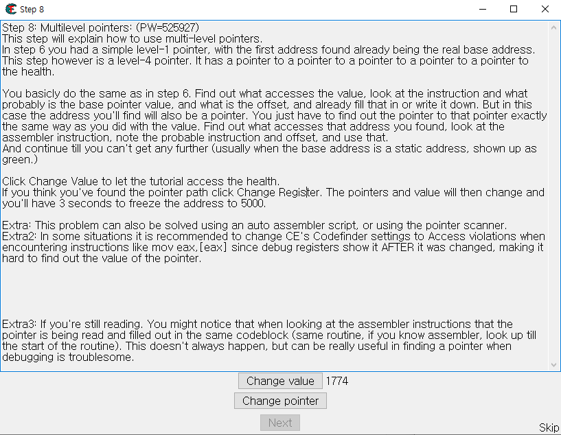 이렇게 프로그램에 포인터를 사용하면 우리가 치트엔진 같은 프로그램을 이용해서 어떠한 값을 추적하는 것이 굉장히 어려워진다는 것을 알 수 있다.