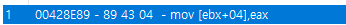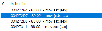 - 프로그램에서 다시 값(value)를 변경하면 다양한 기계어가 색출된다. 클릭한 영역은 [edx]에 참조하여 eax에 들어있는 값을 [edx]에 넣어준다는 뜻이다. 우클릭 후 More info로 들어가보자.