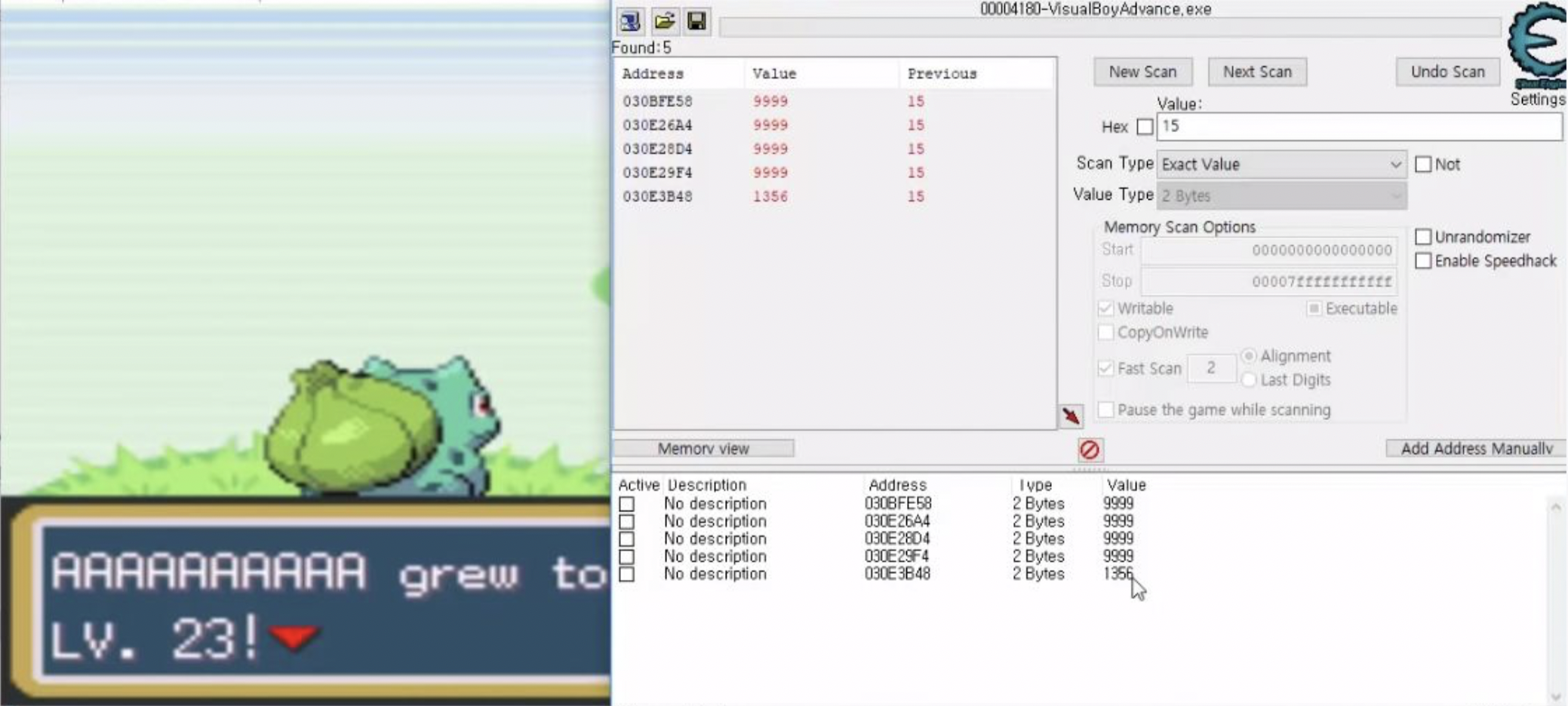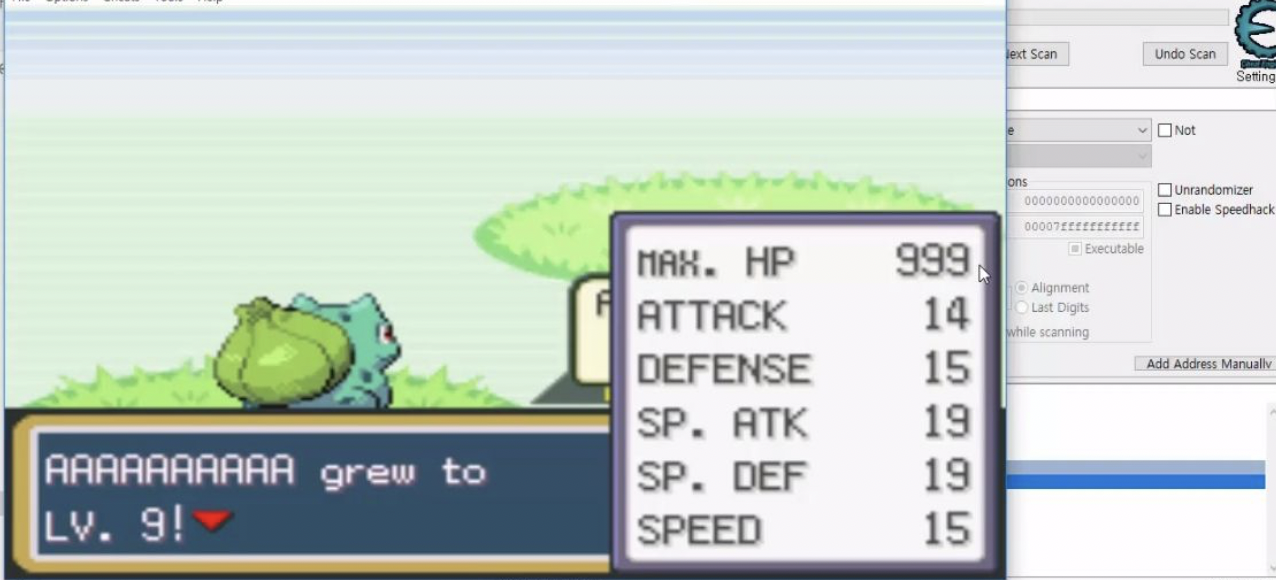 능력치값이 증가하는 순간은 레벨업을 할 때 이기 때문에 레벨이 오르는 순간을 치트 엔진을 통해 분석하여 해당하는 변수 값조작 시도한다.
