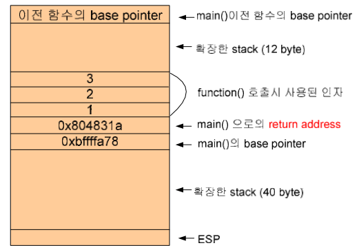 • 41~44바이트 -> 이전 함수의 base pointer를 수정