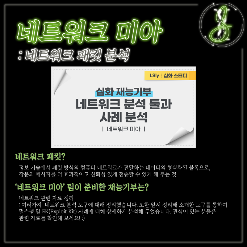I.Sly()는 웹 해킹, 리버스엔지니어링, 시스템 해킹 등 다양한 해킹 분야에서 기본 소양 및 심화 내용을 공부하며 화이트 해커 양성을 목표로 활동하는 해킹 동아리입니다.