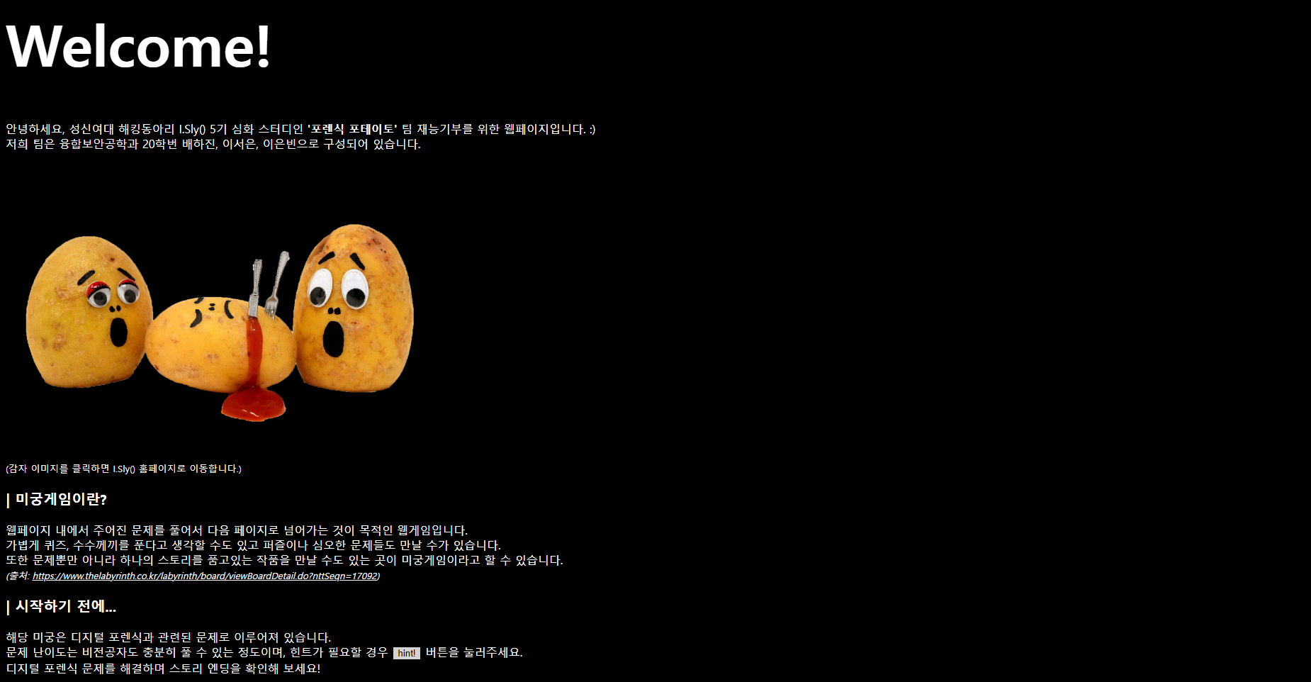 안녕하세요 성신여자대학교 해킹 동아리 I.Sly()입니다.