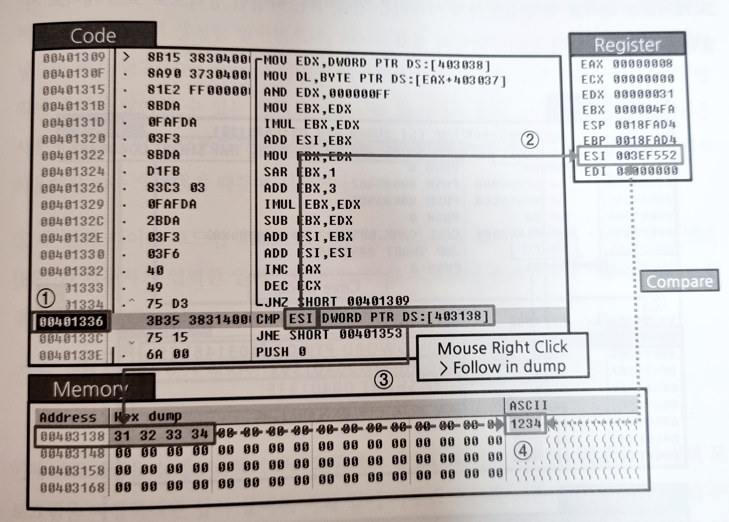-리버싱 입문 책에 수록된 사진을 토대로 풀이법을 설명하겠다.