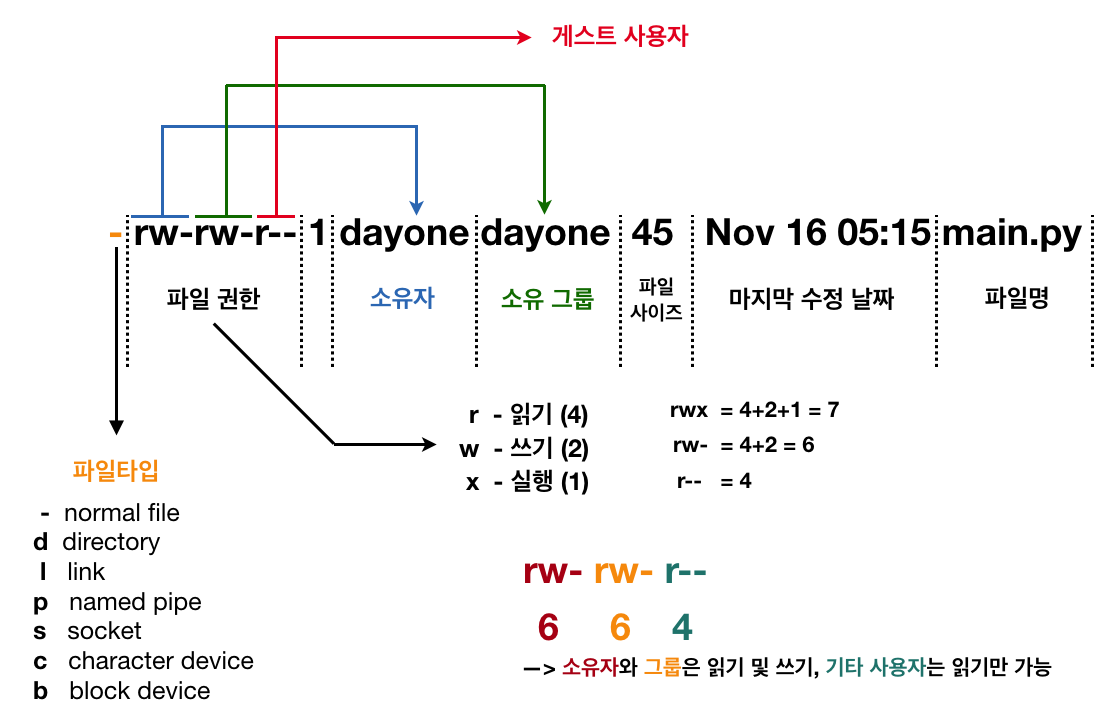 - 사용 예시2 : chmod o+r [파일명] → other 사용자의 읽기 권한을 추가