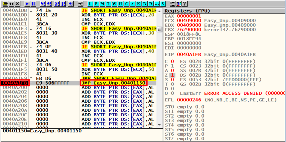 (후에 알았지만 보통 저렇게 JMP 뒤에 나오는 주소가 OEP라고 한다.)